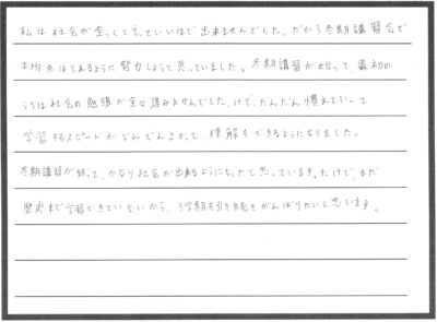 冬期講習後には「かなり社会ができるようになった」という結果に。